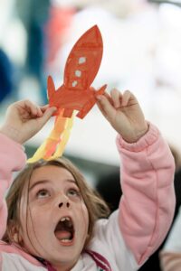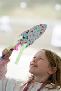 “I loved building my rocket! Mine had rainbow flames and a window for my space bear. When we did the BLAST OFF parade, I felt like a real astronaut showing everyone my mission. It was the best day ever — I want to fly to space again!” – Young Explorer, age 9