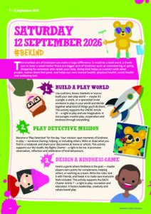 Today’s activities invite children and young people to notice kindness, practise it in playful ways, and discover how it can spark joy for everyone around them.